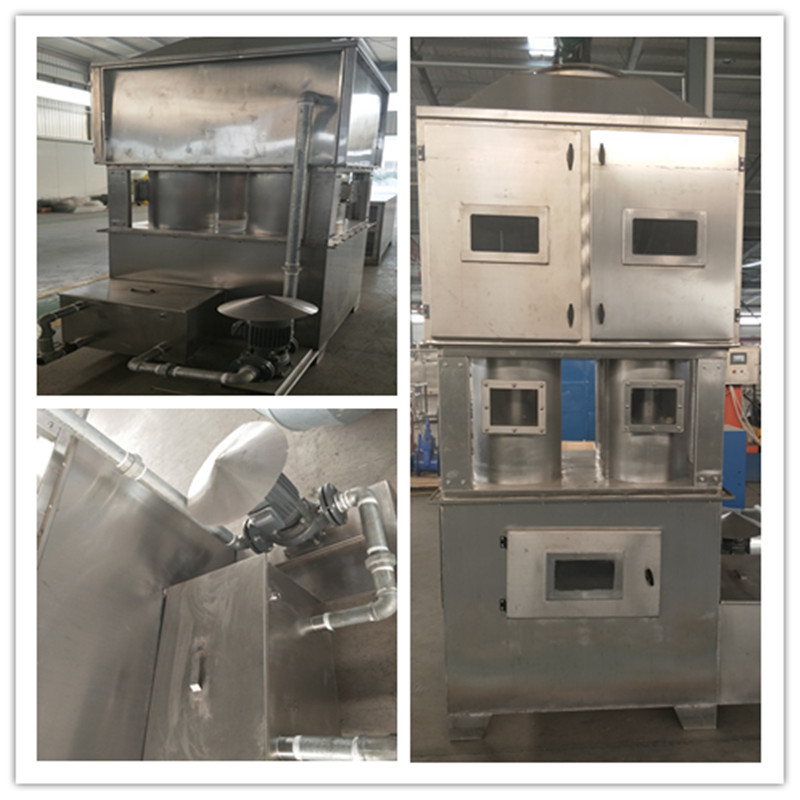 塑煉:是為了滿足各種加工工藝過程對(duì)膠料可塑度得要求,通常在一定條件下對(duì)生膠進(jìn)行機(jī)械加工,使之由強(qiáng)韌的彈性狀態(tài)轉(zhuǎn)變?yōu)槿彳浂哂锌伤苄缘臓顟B(tài),這個(gè)工 藝過程稱為塑煉。 混煉:是將塑煉膠或者具有一定可塑性的橡膠與配合劑在機(jī)械作用下混合均勻,制成膠料,以便制造具有各種性能的橡膠制品。 配合劑與膠料的混煉工藝過程可分為四個(gè)階段:混入、分散、混合和塑化。 橡膠制鞋廠煉膠量大,在煉膠時(shí)需要將各種配合劑和生膠加入密煉機(jī)的進(jìn)料口中,因此在此過程中會(huì)產(chǎn)生一定量的原料泄露和一定量的粉塵泄露。而在密煉機(jī)的出料 口也會(huì)產(chǎn)生大量廢氣,除了煙塵和水蒸氣外,還含有油類混合物,包括乳化油和乳油。其中乳化油的油珠粒徑小于10微米,一般為0.1-2.0微米。氣體中含有表面活性劑,使油珠成為穩(wěn)定的乳化液,停留在管道就會(huì)形成油狀物,長期積累的油泥狀物直接排向大氣就會(huì)使周圍物體表面積附油垢。 煉膠廢氣中主要污染物含有粉塵、硫化氫、二硫化碳、甲苯、非總烴。